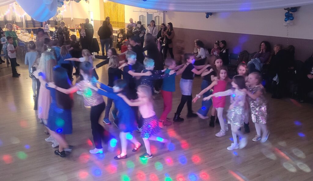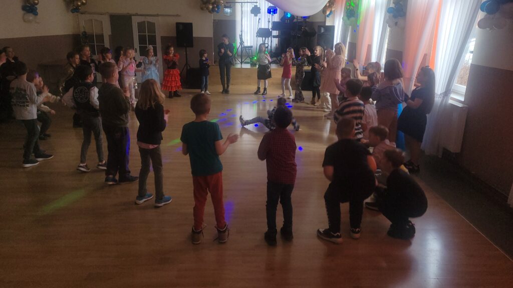 Dzieci przy dźwiękach muzyki puszczanej przez pana Krzysztofa Chrzanowskiego bawiły się znakomicie. Zabawę urozmaicały liczne konkursy, za które ich uczestnicy otrzymali nagrody.