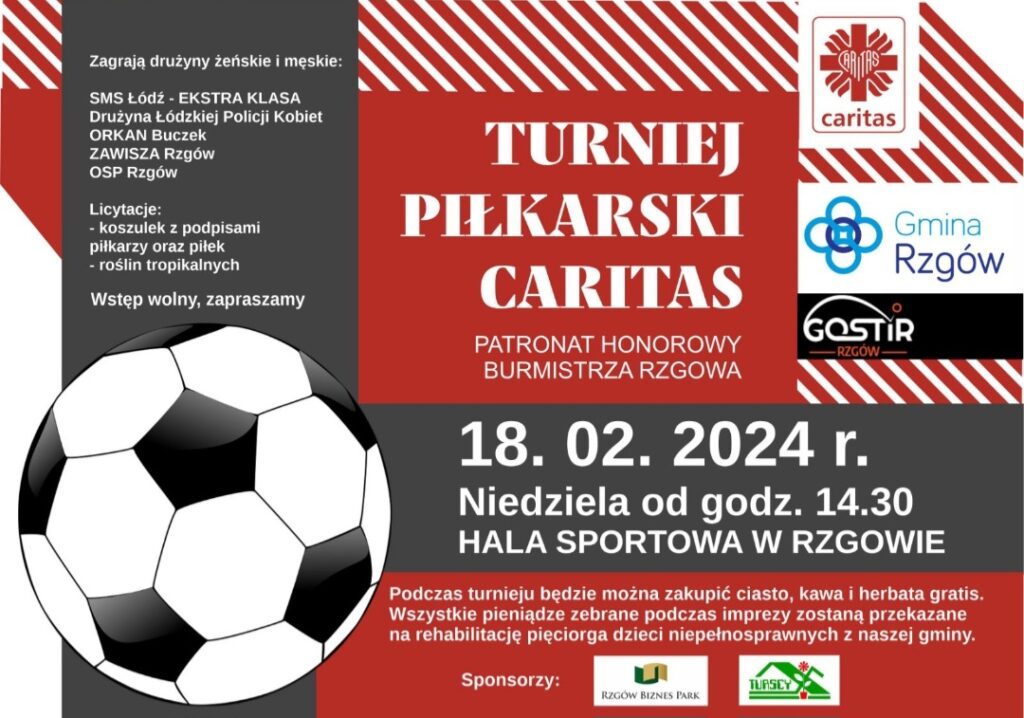 O godz.14.30 na Hali Sportowej w Rzgowie odbędą się rozgrywki piłki nożnej, zagrają drużyny żeńskie i męskie, przewidziane są również licytacje.