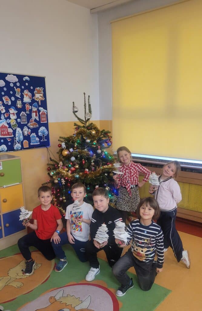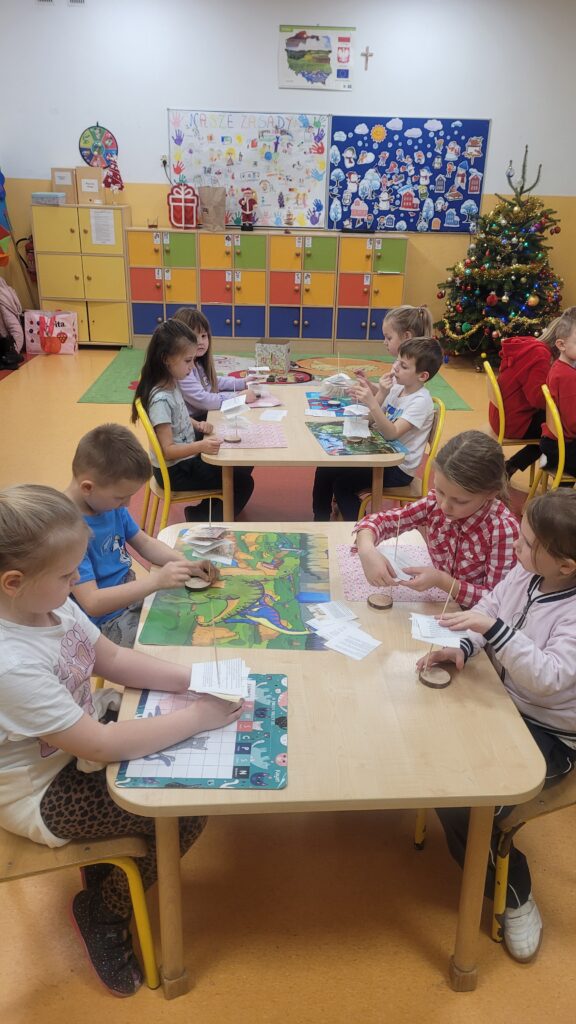 W dalszej części zajęć uczniowie wykonywali świąteczne choinki z gazet, rozwijając swoją kreatywność oraz zdolności manualne.